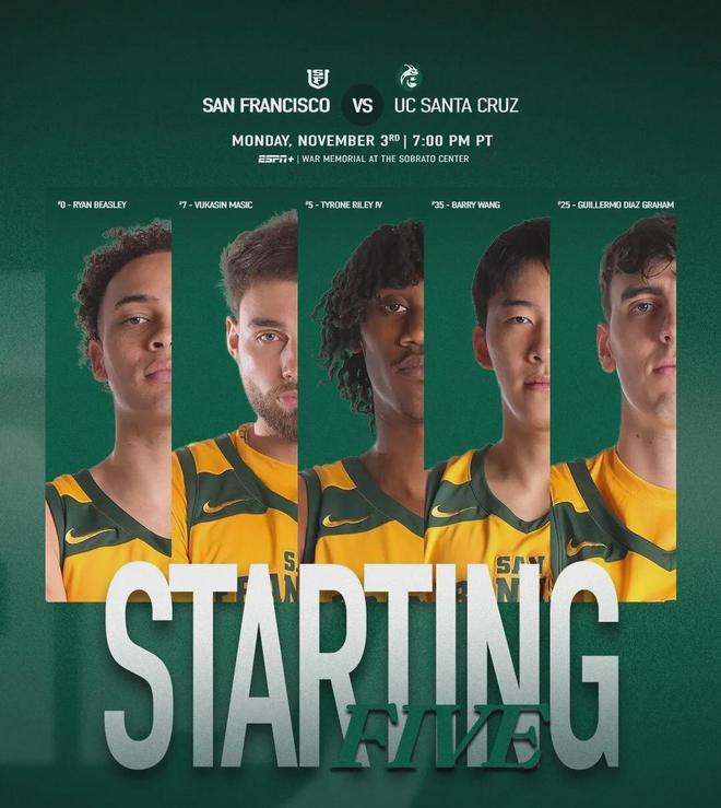 NCAA新赛季常规赛开打,一级联盟球队旧金山大学98-53,碾压三级联盟球队加利福尼亚大学圣克鲁兹分校。