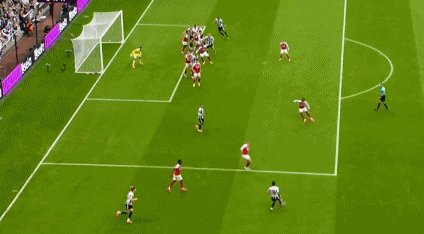 厄德高角球传中,加布里埃尔高高跃起头槌将球砸入网窝,阿森纳完成补时绝杀好戏,2-1实现逆转。