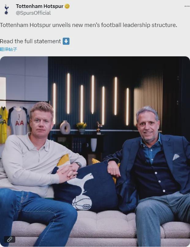 官方:热刺宣布再次任命帕拉蒂奇为俱乐部体育总监,他将和此前被提拔为体育总监的约翰-兰格一起合作,形成俱乐部新的运营管理模式。