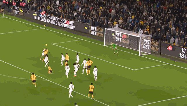 伤停补时阶段,狼队在禁区内制造混乱,无人盯防的沃尔费挑射将球打进。狼队3比4再追一球。