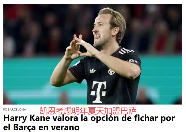 《每日体育报》指出,如果明年夏天凯恩加盟巴萨,33岁的凯恩,应该能保持3-4年高水平。巴萨非常认可凯恩的职业素养、进球能力,签下凯恩将是很不错的选择。
